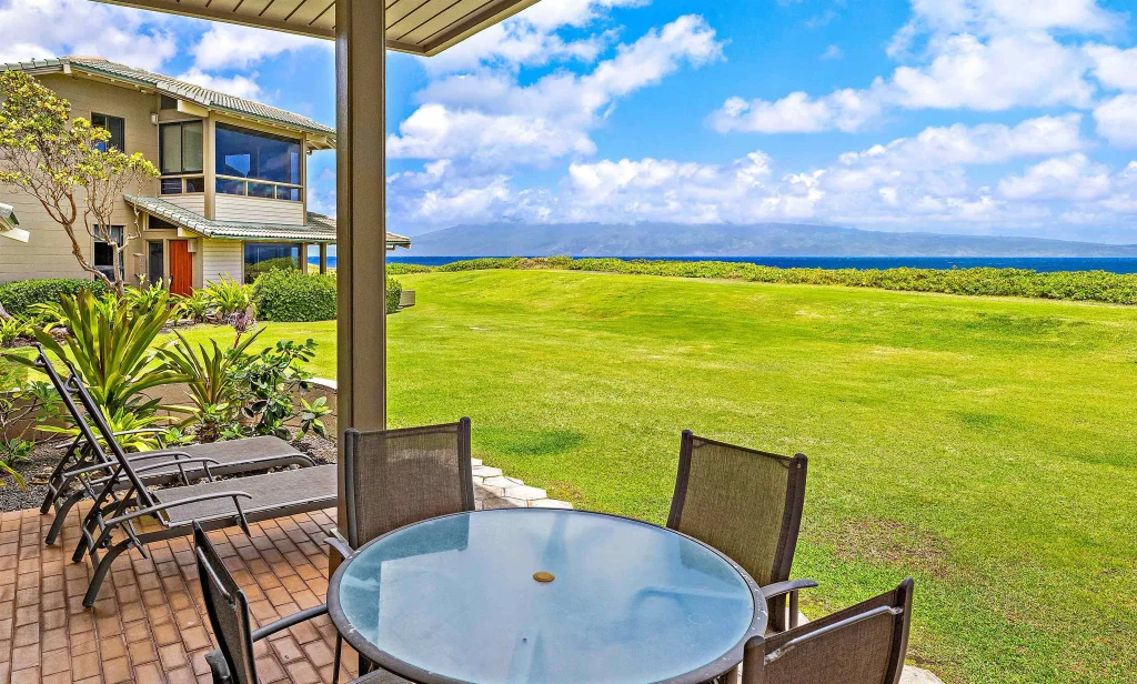 Kapalua Bay Villa 35G-2 is a huge one bedroom one bath unit, that features fantastic ocean views out of your back lanai. Past the lanai is a lush green grassy area before you come to a trail that is a short walking distance to one of the most beautiful beaches on Maul. Across the channel you can see the island of Molokai and during whale season you can see the whales splashing about. This villa is fully furnished and is in the Kapalua Resort. which features world class golf, great restaurants and hiking trails. Your a short walk to the Montage and Montage spa. This villa is in a vacation rental program. You must see this villa!