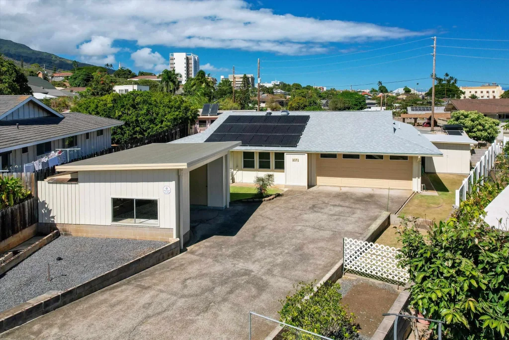 Welcome to Wailuku Town! This 3bd/3.5ba, single level home sits on a 8,740sf level lot. It offers a flexible floor plan that allows for a variety of living options. The main living area is super spacious, has great natural light through skylights & split AC. There are 2 bedrooms & 2 full baths off this living room. The large kitchen features tons of counter space & cabinets and connects the living room to a large additional living space that could be used as a dining area and additional family room. The third bedroom and bath are located beyond this additional living space. The roof was replaced in 2023. There are 18 owned PV panels to help minimize your electric bill. The property includes a spacious driveway with a two-car garage and a bonus single car garage with separate, gated entrance off Kalua Road at the back of the property. Multiple separate covered/enclosed areas offer flexibility for a workshop, project space, storage & more. Conveniently located near schools, parks, shops & restaurants. Please contact your Realtor to schedule a showing today. *Some photos are virtually staged.