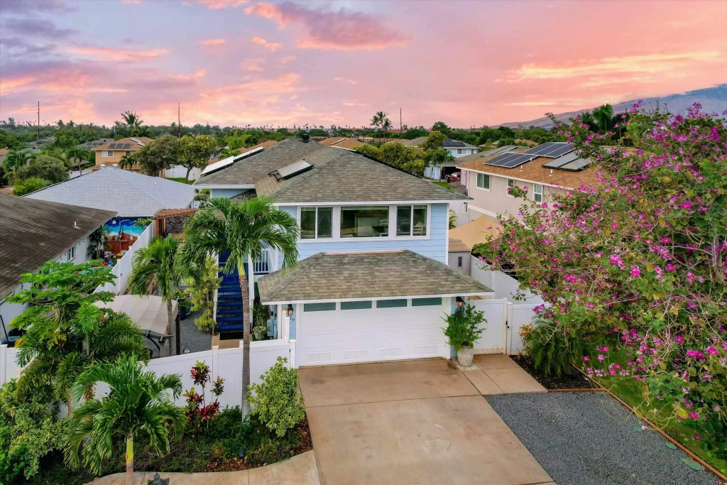 Your Beautiful Maui home awaits. Complete luxury remodeled home in 2023 nearly everything has been done for you new kitchen, appliances, bathrooms and flooring. Windows replaced in 2022 as well as central ac. The seller has spared no expense including the redesign of the landscaping for you to enjoy. This is one of those special properties that will move quickly. Its versatility is highlighted by a ground-level room that could serve as an ideal mother-in-law suite, featuring sliding doors that open to the lanai. Comfort and efficiency are paramount, with the inclusion of owned photo voltaic panels and solar hot water systems. Equally enchanting is the outdoor space, with picturesque landscaping, a workshop and a shed for extra storage. With breathtaking mountain views of Haleakala gracing the front, and captivating views of the West Maui Mountains adorning the back, this single-family dwelling offers a slice of paradise. Boasting five bedrooms and three full baths, this residence comes complete with a lanai and outdoor spa, inviting you to embrace the tranquility of island living. This community also boasts the convenience of being within minutes of some of Maui's most pristine beaches and amenities.