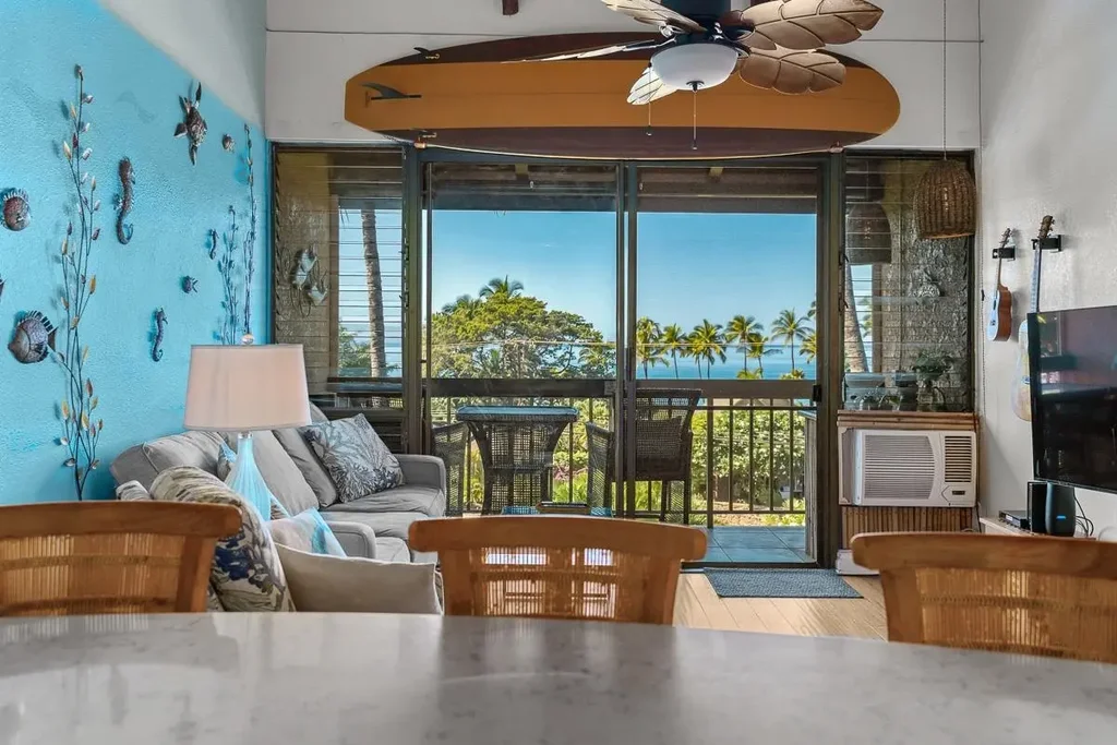 Experience your Maui journey at Maui Vista, a popular condominium complex in Kihei, South Maui. Unit 1-407 is in Building 1 which is within 5 minutes on foot to some of the finest beaches on Maui and easy walking distance to shops, restaurants, surf lessons, and Kalama Park. It is a 2 bedroom, 2 bathroom unit, on two levels with one of the best ocean views at Maui Vista, stretching from Kahoolawe to Lanai to West Maui. Enjoy gorgeous sunsets all year round and watch whales and dolphins from your lanai. See https://youtu.be/qXO0XqJ_cTM for a stunning video of sunsets from 1-407 for you to enjoy selfishly on your own lanai. There is a retractable, mechanized sunshade over the lanai. The unit's decor is inspired by both the sea and Oceana, and has a fun, tropical feel for you and your guests. The kitchen has been remodeled to a more open space concept. Other improvements include the remodel of both bathrooms, bamboo flooring, and the addition of a 200+ square foot storage area upstairs that includes a new washer/dryer. A custom made wall bed/office system was recently added to the loft area. Maui Vista provides free outdoor bike storage, and kayak/paddle board and indoor bike storage for a fee. There is a long term parking area for a fee in the back of the complex. To be sold furnished, with a few exceptions, and As-ls. The unit has one AC in the living room and 4 ceiling fans. There are 3 pools and 6 tennis courts with 3 striped for pickleball. Each unit has one unassigned parking stall. There is a bus stop close to the complex. Owner-occupied, 24 hours' notice is requested to show, strictly by appointment only. See this beauty now.