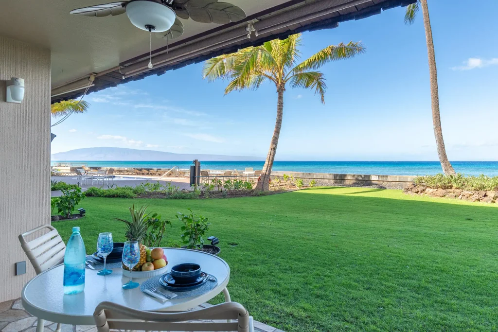 Welcome to one best views for sunset on West Maui. Morning whales greet you and turtles tuck you in at night. Amazing ocean front views of Lanai and Molokai to the north. Highlighting this one-bedroom, one-bath, up-graded vacation rental condo conveniently located just north of Kaanapali. Unit 112 is a ground floor fully furnished, turn-key, high occupancy, vacation rental. Financials available upon request. Shopping, golf, restaurants and snorkeling nearby. Paddleboard and kayak storage available. Stairs invite you down to snorkel on either side of the property. This condo comes fully furnished and everything you need to enjoy the Island life on Maui.