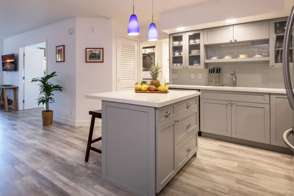 Exquisite custom crafted remodel shines from top to bottom in this coveted 2 bedroom 2 bathroom condo with a jaw-dropping wow factor. This tastefully renovated Maui Banyan condo is well maintained and in excellent condition with extensive upgrades: quartz countertops, maple wood cabinets, LV planks, porcelain tiled lanai flooring, and high-end appliances. Situated in a relaxing tropical retreat, in the heart of South Kihei. Perfectly poised at the highly sought-after Maui Banyan resort condo, directly across the road from three of the most Beautiful Beaches in the World, with the soft golden sands of Kamaole Beach 2, Kamaole Beach 3 to the Left and Kamaole Beach 1 to the Right. A Prime location on the quiet South Side of the complex. The stunning studio A side is also fully upgraded. Accessed by a separate entrance, allowing the flexibility to rent it independently. Offering an open-concept floor plan with a kitchenette, open living space, full bathroom, and private lanai. There is a connecting lockable door between the studio and one-bedroom. A potential for two short-term rental incomes, if you wish. Enjoy convenient condominium resort amenities. On site you will find: 2 Heated Pools, 2 Jacuzzis, 12 BBQ’s, Tennis Court, and your covered deeded parking stall # 265/P107. Great Restaurants and shops just a short walk away. The Fees include: WiFi, Basic Cable TV, Building Complex Insurance, Security, Water, Sewer, Trash, Maui Banyan Management Maintenance and 24 hour Security starting in January. Be sure to check out this Luxurious Turnkey, Well maintained, Fully Furnished and Equipped condo. You won’t want to miss out on this one - It could be your Slice of Paradise! Call your favorite Realtor to schedule a showing today.