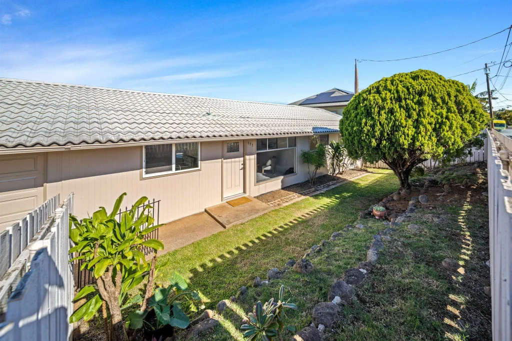 This refreshed Makawao home features a blend of updates in the way of new paint inside and out, fresh carpet and luxury vinyl plank flooring, and fully renovated bathrooms, but it also boasts a nostalgic focal point, a sunken living room. The open kitchen and connected dining area create multiple spaces for family life and entertaining, which all lead to the North Shore view framing deck. The oversized primary suite is complete with multiple closets for ample storage. Outside, the fully contained yard is ideal for children and pets.