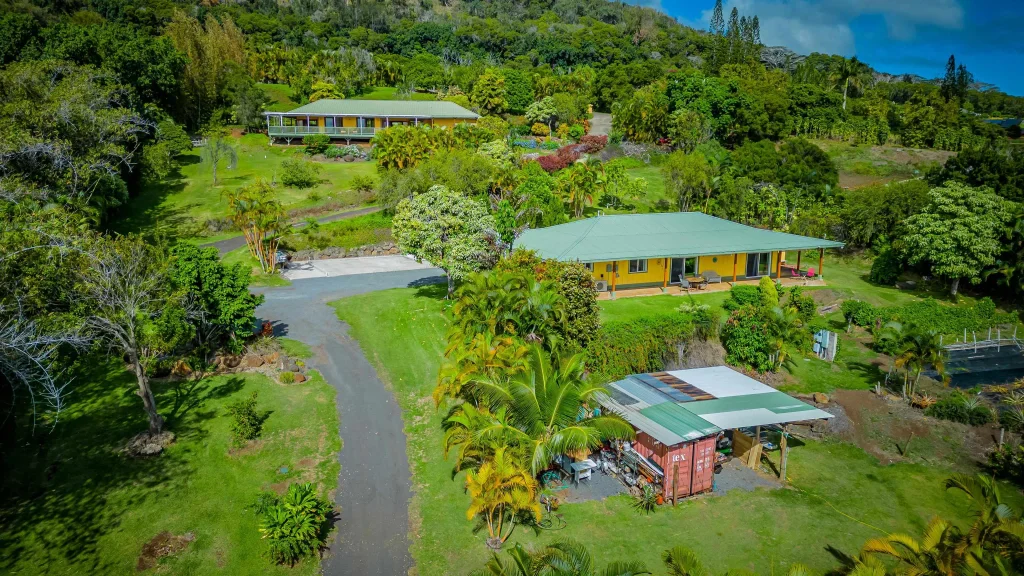 Very private and well-maintained home and cottage in Wailuku Country Estates. Enjoy this spacious lot fully landscaped with a variety of fruit trees and native plants. Enjoy the cool evening breezes and West Maui Mountain views from the deck of the main home or cottage. Perfect for anyone who enjoys lush agriculture and privacy. Located just ten minutes away from Central Maui. Two water meters provide potable and non-potable water for irrigation, with Class A soil providing the ability to be self-sufficient. Non-potable water on a second water meter provides 80,000 gallons of irrigation water for $125.00/month. Each home is strategically located to provide maximum seclusion for the owners, custom construction accents in both homes, and large covered decks allowing for outdoor dining with family and friends. Both homes provide open beam ceilings, covered decks, metal roofing, tile flooring, loft spaces, and creative custom touches.