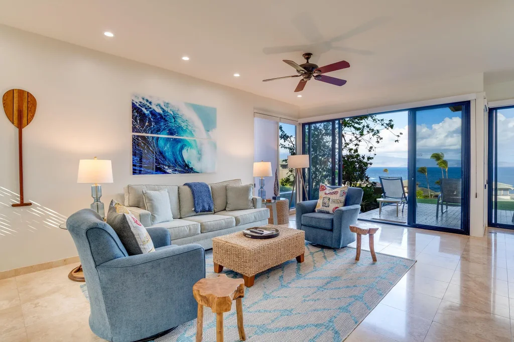 This tastefully designed one-bedroom, one-bathroom condo offers outstanding ocean views and contemporary décor! The kitchen is fully equipped with granite countertops, custom cabinetry, optimal storage space, stainless steel appliances, and a view! Tastefully chosen Brand new furnishings with a bright & airy color palette. The gated community offers 3 ocean view pools with gas BBQ grills and cabanas, outdoor showers and restrooms or enjoy a game of tennis or pickleball on one of the 2 private courts for the Bay Villa residence owners. A large deck for ample outdoor living space and enjoying the sun and Maui beauty also excellent views for Whale Watching. The ocean front coastal walk is right nearby within steps to the beach at Oneloa Bay. Call your favorite realtor today to set up a showing~!