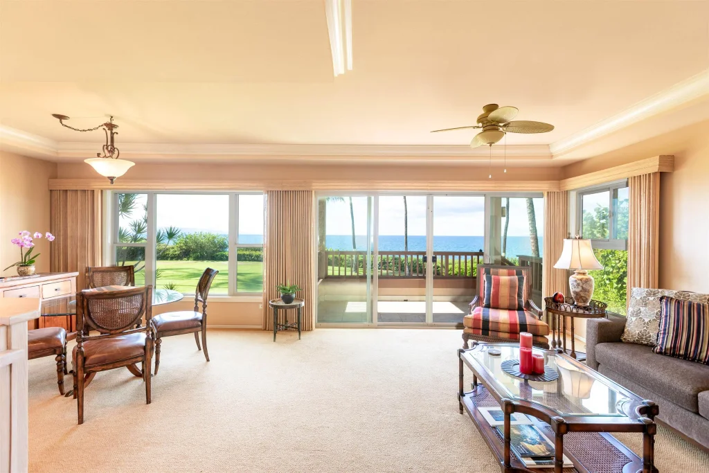 Great location with a 2-bedroom 2 bath condo looking straight out to capture amazing ocean & sunset views along with outer islands, West Maui and south shore views too! Entering the condo, you feel like you just came home with living, dining and kitchen area enjoying direct ocean views and access to the covered lanai. The kitchen has a good work flow with lots of counter space & cabinets and a window over the sink, recessed lighting and bar seating. The primary bedroom also has ocean views, large closet and ensuite bath with double sinks and walk-in shower. The second bedroom is good size and bath adjoining with tub/shower. The condo has lots of windows and good air flow, coffered ceilings throughout, washer/dryer and off-street parking. A big bonus is a very large private basement storage unit with easy access to keep surf & paddle boards etc. There is access in front to get to the water and conveniently situated between Cove Park (2 lots away) or south to Charlie Young Beach! Loke Hale is a very well-maintained smaller complex with 4 condos designed by Hans Riecke and a quiet setting with no vacation rentals allowed. Desirable location and close to stores, restaurants and shopping! It's hard to find an oceanfront condo like this one!