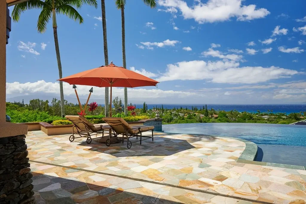 Located in Pineapple Hill Estates, Phase II, Kapalua Resort’s prestigious gated community, this custom-built, single-level residence boasts panoramic ocean, sunset, and neighboring island views. With just under 5,000 square feet of living space on approximately half an acre of land, this estate offers seamless indoor/outdoor living and an abundance of privacy with its gated entrance and elevation. This well-designed floorplan features a tranquil foyer with water features leading into an expansive great room overlooking the infinity edge pool and spa. Located on the north wing is the primary suite, with a luxurious ensuite featuring a his and hers walk-in shower, vanities, and toilets, and a second bedroom that is currently being used as a home office. The south wing includes two additional guest suites, a generous storage room, and a large 3 car garage that also accommodates a golf cart. The kitchen opens up to the dining area that seamlessly expands to the outdoor dining area and built-in grill for effortless indoor/outdoor entertaining. Premium finishes include African Mahogany Wood, custom made cherry cabinets, travertine flooring, granite countertops, Control 4 and Lutron Home Automation System, built-in sound system throughout the home with surround sound in the master bedroom & living room area, and a full-sized attic space for ample storage above the garage with a dumb waiter elevator system. Additionally, the home is equipped with a 73-panel photovoltaic system, which is grandfathered into the Net Energy Metering Program. Additional amenities in the Pineapple Hill development include a Resident Manager, a Pavilion with a fabulous pool, entertainment area, catering kitchen, barbecues, and tennis courts. Kapalua Resort amenities include fabulous beaches, two world class golf courses, The Bay Course and The Plantation Course, as well as tennis facilities, hiking trails, luxury hotels and spa, fine dining, and a resort-wide shuttle. Furnishings negotiable.