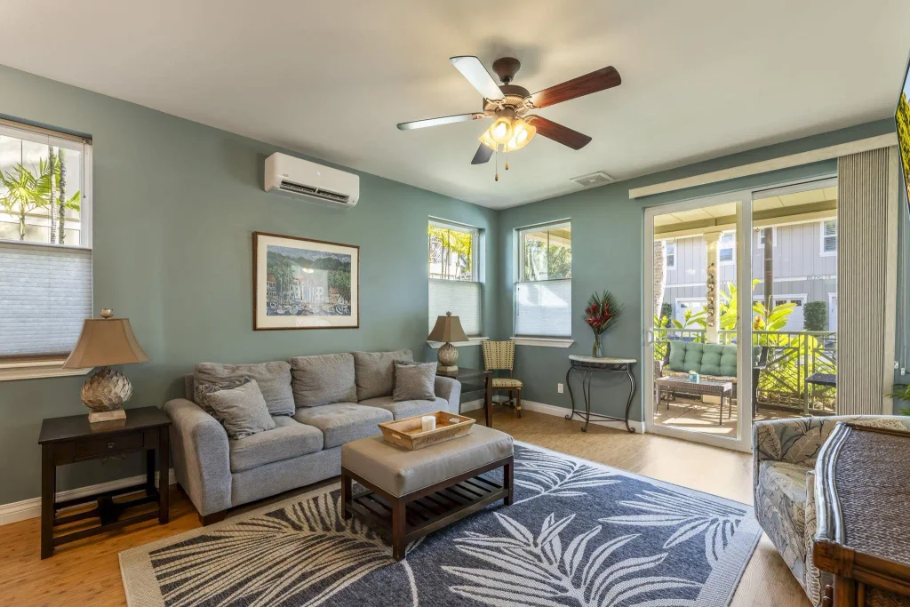 Experience resort style residential living within the highly sought-after condo complex in Central Kihei – Kai Ani Village. Welcome to unit 1-101 a spacious 2-bedroom, 2 bath floor plan featuring a detached single-car garage with shelving, an extra parking spot and is pet friendly. The upgrades include Luxury Vinyl plank flooring, 3 split AC, dining swag lamp, refrigerator, microwave, dishwasher, privacy light blocking blinds, and locking screen door for optimal cross ventilation. Offered Turn-Key and well appointed with tasteful island style furnishings, including a stunning Indian rosewood table, kitchenware, linens and a wall-mounted TV. Enjoy the convenience of a reverse osmosis under-sink water filter. An added hall door creates a private second bedroom suite. This unit is equipped with a laundry room that includes a utility sink and extra storage. Accessibility features are a convenient wooden-planked entrance, grab bars in the showers. Enjoy outdoor time on the spacious shaded lanai with a private gate access and keyless entry into the unit. Take a break in the pool area oasis to swim, relax in the spa and lounge in a cabana. Barbecue with friends in the pool patio while you season your food with fresh herbs from the garden. Kai Ani Village is perfectly situated across the street from the beach, and also in the hub of most of the conveniences of daily life, offering easy access to gyms, groceries, and numerous restaurants. Sink your toes in the warm sand or stroll the beach in awe during a colorful sunset. Don't miss the chance to call this gem your home!