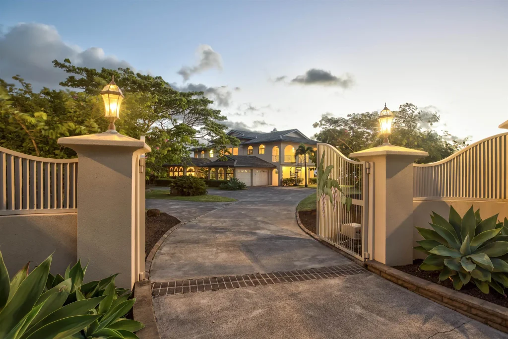 Enter a world of beauty through your PRIVATE entry gate to a gorgeous 4,232 sf home with UNOBSTRUCTED VIEWS on 2.2 acres in Pau Hana Estates! The huge windows showcase the bi-coastal ocean views and glorious nighttime city light views! This beautiful 4 BR, 3 BA home features a custom kitchen with a panoramic view window looking out to the private backyard and amazing flowers, shower trees, fruits for the picking and mature palms. Just stand at the induction cook top and watch the cruise ships pull in and out of the harbor! This elegant property comes with a fully owned PHOTOVOLTAIC system as well as solar hot water! The breezes are lovely at the home's 1500' elevation; rarely is heating or air conditioning required. You will also appreciate the Agricultural zoning, the low property taxes and very close proximity to town. This usable parcel is large enough to keep horses or livestock and you can grow edible gardens in the raised masonry vegetable beds. This home has been lovingly cared for over the years and reflects the heart and soul of the Owner. There is beauty everywhere you look. Why not capture the elegance for yourself?