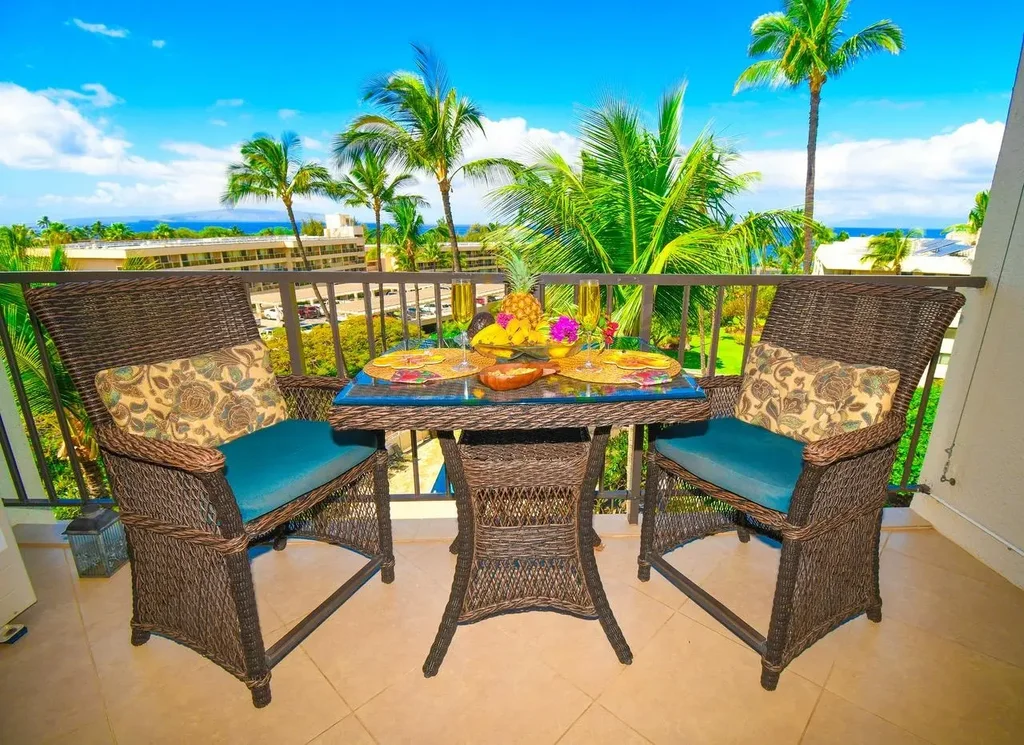 This remarkably upgraded and very successful 1-bedroom vacation condominium is located direct center on the fifth floor of the D building. This is one of the best 180+ degree ocean and year-round sunset views in all of Kihei Akahi. Unit D510 is exceptional and luxurious, reflecting a transformation that began in 2013 with a thorough and upscale renovation. Key upgrades include: Luxurious Tile Flooring: Adds a sophisticated touch to the entire unit, enhancing its elegance. Open Plan Layout: The removal of a wall separating the kitchen and living room has created a spacious, open atmosphere. This design choice is popular for its ability to facilitate social interaction and a sense of openness. Split AC System: Ensures comfortable living conditions, providing efficient temperature control. Custom Cherry Wood Cabinetry: The integration of these cabinets throughout the unit adds to the aesthetic charm and enhances its elegance. Custom Rounded Soffit Ceilings: Present in the living room and above the kitchen, these ceilings contribute to a unique architectural element, enriching the aesthetic appeal. Gourmet Kitchen with Granite Countertops: The kitchen is a highlight, featuring a thoughtful 'make sense' design. The full granite backsplash complements the slab granite countertops, and the double sink enhances functionality. High-Quality Appliances: The mention of a stainless steel Fisher & Paykel refrigerator indicates the use of premium appliances, adding to the kitchen's appeal. Custom Lazy Susans: These provide practical storage solutions, maximizing space efficiency in the kitchen. As you step onto your private lanai, a mesmerizing 180 degree ocean view unfolds before you - an expanse of azure ocean, along with year-round sunsets blazing across the sky, and the prestigious three-island panorama of Kahoolawe, Molokini, and Lanai. It's a visual symphony that captures the essence of island beauty. This home, offered fully furnished and turnkey, represents an unparalleled opportunity. Ideal for those aspiring to invest in a sought-after vacation rental or to just indulge in the ultimate Maui lifestyle, whether as a primary residence or a cherished second home. The Kihei Akahi community complements this exquisite home with outstanding amenities - dual swimming pools, tennis/pickleball court, and BBQ areas, all nestled within verdant, tropical landscaping. Located in the vibrant heart of Kihei, a delightful array of dining and shopping options await just a short walk away. Adding to its allure is the proximity to the famed Kamaole Beach Park II, merely a stone's throw across the street, offering easy access to its inviting sandy shores. Here, the dream of island living is not just imagined but vividly lived. The attention to detail in the renovation and the choice of high-quality materials and appliances suggest a home that is both comfortable and elegant. Kihei Akahi Unit D510 offers an exceptional opportunity to own a piece of Maui with its ocean views, modern upgrades, custom features, and central location. Don't miss this chance to own what is quite possibly the best unit in the complex.