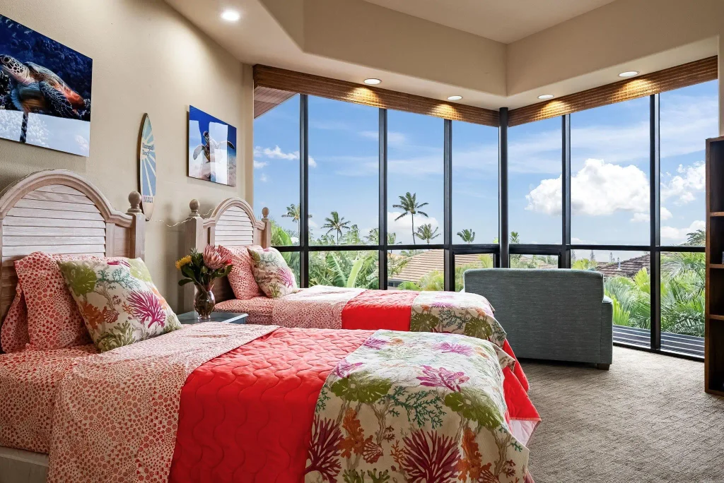 Beautiful four-bedroom home on Kaanapali Hillside! This expansive over 4000 square foot home features an open floor plan with a grand entrance, large kitchen and exquisite finishes all around. All four bedrooms are ensuite and ample in size. Natural lighting floods the first floor, including a formal dining area, living area and media room perfect for movie or game nights. Upstairs is all about the views! Enjoy stunning sunsets and whales frolicking from your bedrooms, and primary bedroom lanai. A large home office is perfectly tucked away (yet easily accessible!), and one ensuite bedroom downstairs is perfect for guests. A large pool and spa make it easy to enjoy all the West Maui sunshine and sip on your favorite pau hana beverage. Kaanapali Hillside is a residential community with amenities including a park and playground area. Residents are minutes away from the world famous Kaanapali Resort as well as amazing beaches for swimming, snorkeling and relaxing. This is a golf cart friendly neighborhood. Home is offered fully furnished