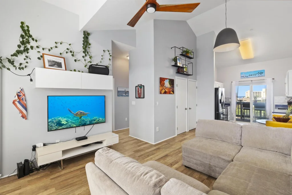 This residential condo is situated in the front row, building 8, of The Villas at Kahana Ridge located in West Maui. Gorgeous ocean and sunset views can be enjoyed from this top level vantage point. This home features two bedrooms, two bathrooms and boasts cathedral-style ceilings that enhance its spacious feel. Both the primary bedroom and the main living area are equipped with wall unit ACs for comfort. The location is ideal for those who enjoy the convenience of nearby shops and beaches, accessible by walking or biking. Adding to its appeal, the complex is pet-friendly and includes one deeded parking space that comes with the purchase. This unit has been well cared for and is offered turnkey. Now ready for its next owner.