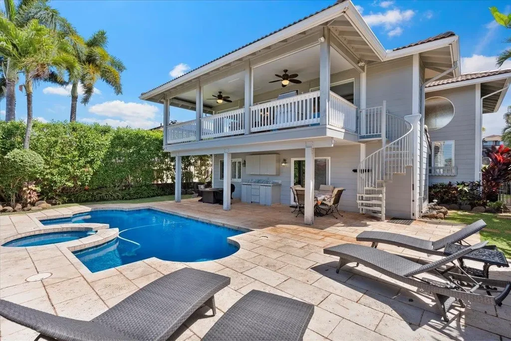 Panoramic ocean and island views from one of the best homes in all of Kahana Ridge. Fully upgraded and meticulously maintained, 41 Poinciana includes wood flooring throughout, plantation shades, owned solar PV system, custom walk-in closet, electric outdoor shades, electric vehicle charging, security system with cameras, Ring door-camera and an elevator. The upper level of the home provides 180 degree Pacific Ocean, outer island and year-round sunset views from the kitchen, dining area, living room, massive outdoor deck, and the master bedroom. The lower level of the home includes an additional living area, two bedrooms, full bathroom and finished garage with epoxy flooring. Enjoy outdoor living at 41 Poinciana, complete with newly surfaced swimming pool and spa, built-in barbecue, kitchenette, and travertine tiled deck. Kahana Ridge is located halfway between Kaanapali and Kapalua, and a short distance to some of the best shopping, dining, and beaches that West Maui has to offer. 41 Poinciana is being sold turnkey, fully furnished and move-in ready.