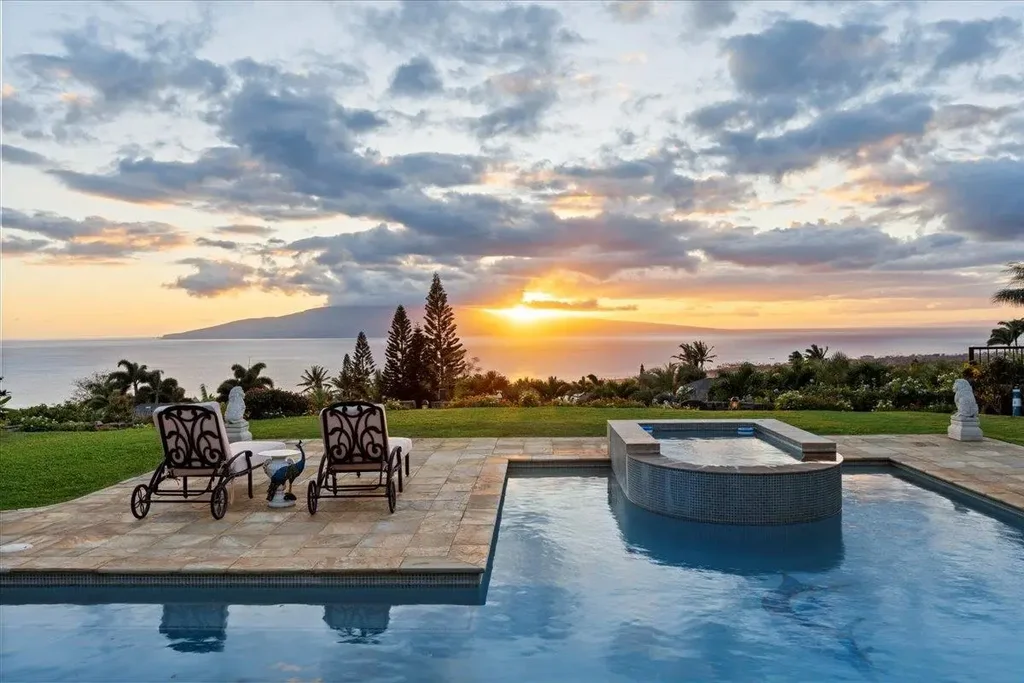 Situated atop the serene slopes of the West Maui Mountains, 75 E Huapala Place presents itself as a private oasis, embracing luxury and tranquility with its breathtaking, year-round sunsets and expansive 180-degree vistas of the Pacific Ocean and outer islands. The estate is a masterpiece of design and craftsmanship, featuring a single-level main residence alongside a charming accessory barn dwelling, all set within over an acre of meticulously landscaped, terraced gardens. The verdant surroundings boast a large swimming pool with spa and cascading rock waterfalls, creating a peaceful retreat that blends seamlessly with the natural beauty of the island. As one steps through the front door, the home opens to reveal panoramic ocean and island views that fill the living spaces with light and beauty. The interior is a testament to open-concept living, with a chef’s kitchen and living room designed to capture the essence of the spectacular scenery. Pocketed sliding doors and extensive covered deck space invite the outdoors in, offering unparalleled indoor/outdoor living experiences. State-of-the-art amenities include security cameras, a Sonos sound system, updated appliances, and an owned solar PV system with Tesla battery backup, ensuring modern comfort and sustainability. The water softener and filtration system further enhance the home’s commitment to quality and wellness. The Master Wing is a sanctuary within itself, featuring an ocean-view master bedroom, a dedicated office space, his-and-hers closets, and a master bathroom complete with an oversized walk-in shower and luxurious soaking tub. Comprising over 4,400 square feet under roof, the property also includes two additional guest bedrooms, a versatile den/flex room, and a spacious two-car garage. The accessory barn dwelling adds a layer of convenience and versatility, equipped with air conditioning, a kitchenette, and a separate gated driveway. The grounds of 75 E Huapala Place have been transformed into a haven of tranquility, featuring an array of tropical landscaping, fruit orchards, rock walls, and meandering footpaths that lead to a picturesque gazebo, ensuring utmost privacy and serenity. This property is not just a home, but a lifestyle offering, perfect for the discerning buyer seeking to immerse themselves in the beauty and harmony of Maui. Launiupoko is celebrated for its vast agricultural lots and a serene, countryside ambiance that captures the heart of Maui’s luxurious yet laid-back lifestyle.75 E Huapala Place stands as a testament to luxury living, where nature’s beauty meets unparalleled comfort, making it an opportunity not to be missed. Property is Unit B of a CPR.