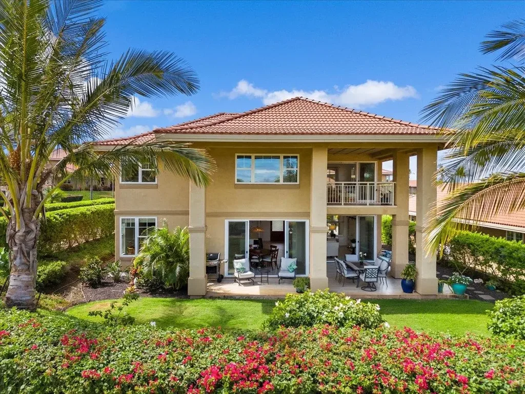 Experience the epitome of luxury living within the highly desirable Hokulani Golf Villas gated community. The sprawling 40-acre complex is graced with abundant green spaces and a lavish infinity pool, clubhouse, and barbecue areas. This stunning 4-bedroom, 3-bathroom residence boasts 2,548 Sq Ft of custom crafted living space. Upon entering, you'll be greeted by an open floor plan featuring 9-foot ceilings, cultivating a sense of space and warmth, inviting you to entertain or simply unwind and relax. Delight in your meticulously designed kitchen with Quartz countertops and sleek stainless steel appliances, including a gas range. Step outside onto the private north-facing back porch and envelop yourself in the expansive views of the seemingly endless manicured greens of the Maui Nui golf course, while enjoying the refreshing trade winds. Enjoy the generously proportioned ensuite bedroom upstairs, featuring two balconies facing north and south, providing stunning views of the ocean, mountains, and Maui Nui Golf Course. Unwind in the expansive shower or pamper yourself in the luxurious corner soaking bathtub. Two additional bedrooms provide picturesque views of the golf course, along with a bonus room that holds potential for various uses. Amenities include a full-sized two-car garage, central air conditioning for year-round comfort, and beautifully crafted granite countertops in all bathrooms for added elegance. Ideally situated just a few minutes from South Maui's stunning beaches, exciting activities, vibrant shops, and delectable restaurants. Don't miss the opportunity to own this exquisite home in one of Maui's most desirable communities. Schedule a showing today.