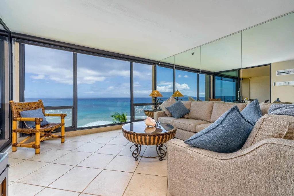 Located on the 8th floor of the Molokai Tower offering amazing ocean views and the neighbor islands of Lana'i and Moloka'i. A prime spot to watch year-round sunsets, humpback whales in winter and most days, the sea turtles in the surf below. If you are lucky the occasional monk seal will swim to shore and rest on the beach right in front. Hotel zoned per County records. This 8th floor spacious one bedroom condominium features floor-to-ceiling windows with ocean views from your private lanai, kitchen, living room and bedroom. The tile flooring throughout and wall of mirrors in the living room gives this an extra feeling of a beautiful open tranquil space. The sliding glass doors open and close easily and the electric shade in the living room is a real plus. Wood cabinets, granite counter tops and stainless-steel appliances in the kitchen are all updated as well as the tiled walk-in shower. A brand new couch and tasteful furnishings in the bedroom complete this well appointed unit. The Mahana at Kaanapali offers a quiet beachfront resort atmosphere under the shade of the Monkey Pod trees. Amenities include a beachfront swimming pool with spa, shuffleboard, lighted tennis court, poolside grilling facilities and access to the Kaanapali boardwalk, restaurants and beach activities. Monthly Maintenance includes electric, A/C, gas, water, sewer, elevator service, trash, recycling, cable TV, internet, storm, flood and general liability insurance, and a monthly contribution to the Capitol Reserves Fund for major components of the building. Unit 807 is in the on-site Aqua Aston rental management program and can be shown on appointment when vacant. Unit is being sold fully furnished excluding some artwork.