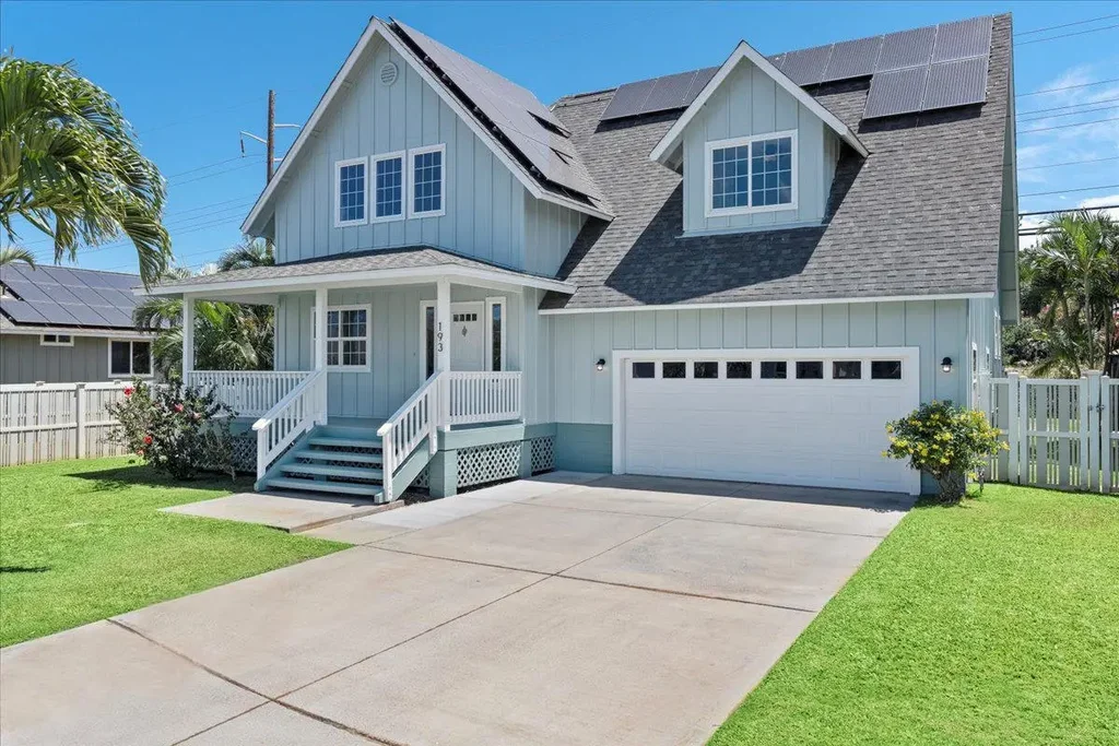 Welcome to your dream home at 193 Oluea Circle, nestled in the heart of the sought-after Kihei neighborhood of Kamali’i Alayna! This stunning plantation-style residence boasts unparalleled beauty and spaciousness, offering a luxurious retreat for you and your loved ones. Step inside to discover a bright and airy living space adorned with cathedral ceilings, creating an inviting atmosphere for relaxation and entertainment. Admire the exquisite Tiger strand bamboo flooring that adds a touch of elegance to the downstairs living area, setting the tone for the entire home. The masterful design of this home includes 4 generously sized bedrooms and 2.5 bathrooms, providing ample space for your family and guests. The downstairs primary bedroom features a private lanai, perfect for enjoying tranquil moments outdoors, and a lavish bathroom complete with dual vanities, a tub, and a separate shower. Upstairs, you'll find three additional bedrooms offering versatility for a home office, guest rooms, or a cozy retreat for family members. A spacious room awaits, offering endless possibilities as a family room, game room, or a second primary bedroom suite with hook-ups for an additional bath. This home boasts pride of ownership with a plethora of upgrades and amenities designed for modern living. Recent improvements include new exterior paint, upgraded kitchen, primary bathroom cabinets half bathroom cabinets, and fixtures downstairs. Rebuilt back deck and an expanded driveway along the front lanai, providing added convenience and curb appeal. Embrace energy efficiency with 35 solar panels and a battery backup system installed in 2023, ensuring minimal electric bills ranging from only $20 to $30 a month. Conveniently located across from the beach, Kamali’i Alayna offers a desirable lifestyle with a park and playground for community enjoyment. Embrace the essence of island living in this immaculate residence, where every detail has been thoughtfully curated for your utmost comfort and enjoyment. Don't miss the opportunity to make 193 Oluea Circle your forever home. Schedule your showing today and experience the essence of luxurious island living in Kihei!