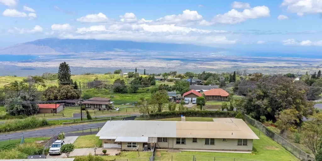 Take this opportunity to live and enjoy this home with beautiful, bicoastal ocean, mountain, and city view, especially sunset view. The year around flower blooming garden on great climate near 3000 ft elevation make this property so special place on heavenly Kula, Maui life. The original county record of this single-family home shows of 5 bedroom and 2.5 bath with 2 car garage with large deck by the driveway. This home has the feel and privacy of a duplex, thanks to the separated living spaces by a door for 3 bedroom and 1.5bath (1702 Sq ft) and 2 bed and 1bath (960 Sq. ft), with each having its own entry doors, driveways, fences, gates and Laundry and water heater. The primary portion of the home features beautiful oak hardwood floors, redwood construction, and a wood-burning fireplace, an extra den, and a 2 car garage. A new track deck by the front entry is great for outdoor living. The other portion of the home which was built in 1977, was renovated in 2022 with vinyl tile flooring, marble countertops, new paints, cabinets, and more. The house is nice and bright, thanks to the many windows. Enjoy seasonal flowers, stars, sunrise on Haleakala to sunset and city night views from a large concrete deck by the driveways. This wonderful property is a great opportunity! Agricultural zone. Easy access to main Kula highway also community offers restaurants, public places and parks, schools, and recreation center near this home. Please do not enter the property without private showing scheduled.