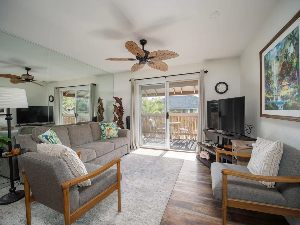 This 2 bedroom with TWO full baths boasts tastefully updated countertops, cabinet faces, and vinyl floors throughout. The unit also enjoys a fully covered front porch and lanai, and two portable AC units to keep you cool in the warmer summer months. Located near the southwest corner of the complex, far away from any roads, yet a short stroll to Sugar Beach, shopping and some of the best shave ice you'll ever experience! The Kihei Canoe Club and a dog park are also just across the street. Kihei Villages is centrally located so you're just 15 minutes from the airport, and other conveniences such as shopping, restaurants, and other businesses are all close by. Maintenance fees were just increased by about $300 to $826.44 to cover the increase in fire insurance costs.