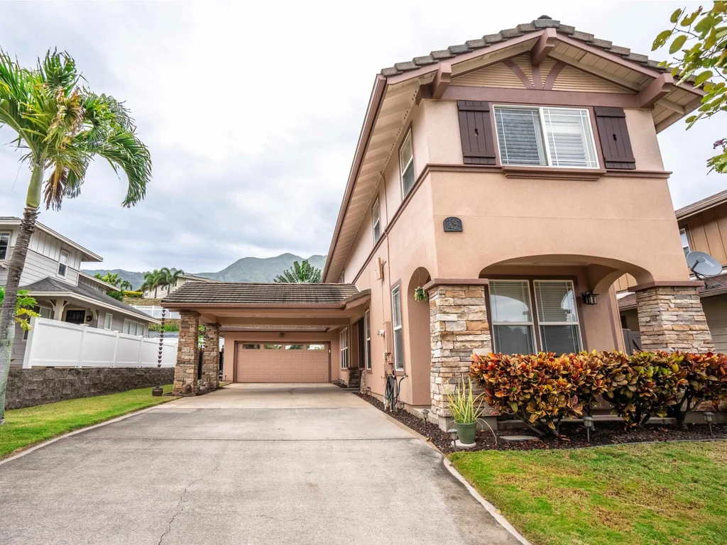 Escape to luxury living in this meticulously crafted 4-bed, 3-bath, 2,279 sqft home in Maunaleo. A grand entrance welcomes you with shuttered doors, high ceilings, and arched details. Enjoy an abundance of natural light from gallery-like windows throughout. Featuring solar water, central AC, and 22 owned PV panels, energy efficiency is a priority. The fenced yard boasts terraced fruit trees, stone lanai with 2 pagodas, perfect for outdoor entertaining. Inside, a chef's kitchen with granite counters, pull-out drawers, island, and pantry awaits. The primary suite offers dual closets, wood ceiling fans, and a spa-like bath. With parking for all your vehicles, including a 2-car garage and carport, convenience is key. Close to Central Maui amenities, this home offers the perfect blend of comfort and sophistication. Schedule your viewing today and experience luxury living at its finest.