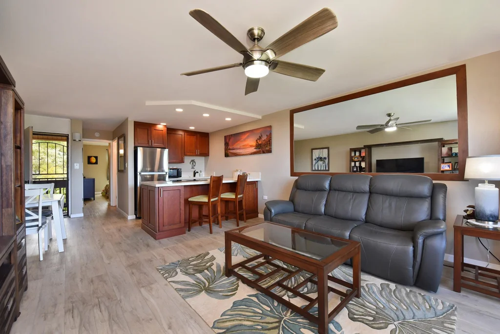 This beautifully remodeled and immaculate 1 bedroom 1 bathroom is nestled within the desirable Napili Ridge community. Positioned in the esteemed D building, this residence offers a verdant green belt with the majestic ocean as its backdrop. Upgrades include luxury vinyl floors, kitchen cabinets, quartz countertops, stainless appliances, custom lanai blinds, recessed lighting and new electrical panel. Extra storage on the lanai. Sold fully furnished. Napili Ridge has lush tropical greenery and meticulously landscaped grounds. The location offers easy access to shopping, dining, and leisure activities. Just steps away lies the pristine shores of Napili Bay, inviting you to bask in the sun or enjoy aquatic adventures. This condo offers the ideal fusion of comfort, convenience, and natural beauty. Embrace the opportunity to call this exquisite property your own and experience the unparalleled magic of Maui living.