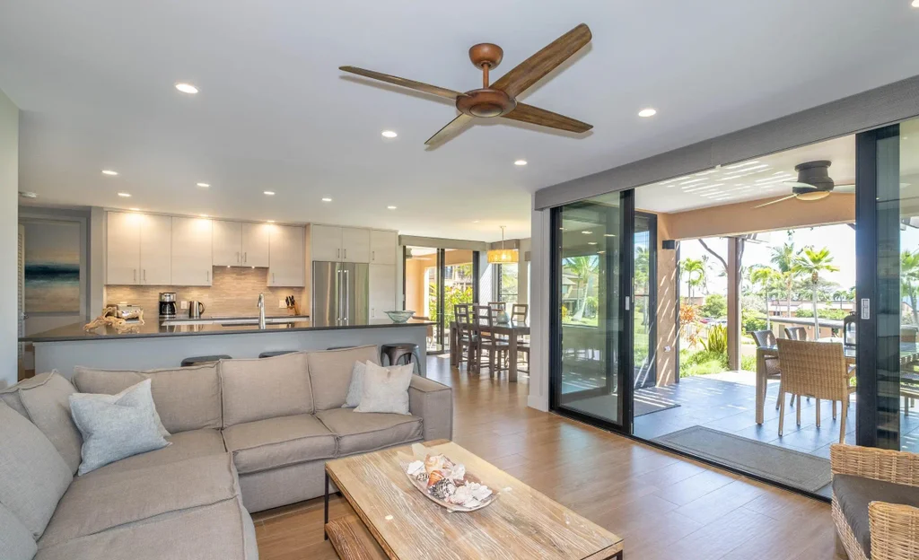 Absolutely stunning 2 bedroom Wailea Ekahi villa with every upgrade imaginable! The villa has been transformed through an extensive designer remodel, achieving a stunning and expansive modern aesthetic, illuminated with the tranquil hues of the seaside. Every detail has been meticulously curated in this luxurious renovation, making it an ideal sanctuary for a rejuvenating island getaway. Iconic properties such as this one rarely become available. This is the crown jewel of Ekahi. Nestled on the serene greenbelt, Ekahi 28A boasts an excellent location in the lower village. Step inside to discover a living space where perfection meets sophistication. The entire interior has been updated to the highest standards with a modern yet relaxed and comfortable design. No expense was spared in transforming this villa into a haven of luxury. The layout has been thoughtfully redesigned to enhance flow, functionality, and visual appeal. Impeccable quality is evident in every corner. The kitchen is a chef's dream, featuring new top-of-the-line appliances and premium finishes. The opulent primary suite boasts a king-sized bed, privacy curtains, an en-suite bathroom with a walk-in shower, and a secluded lanai. A spacious secondary primary suite offers two queen beds, privacy curtains, a private bathroom with a combined tub and shower, and a tranquil garden lanai exclusively for your enjoyment.The bathrooms have been transformed into spa-like retreats, featuring high-end fixtures and exquisite tile work. Stay cool and comfortable year-round with the new split AC system. Literally, every aspect of this villa has been professionally addressed and upgraded. It's being offered completely turnkey by the sellers, and ready for you to enjoy. Wailea Ekahi offers world-class amenities, including direct access to Keawakapu Beach, multiple pools, pickleball courts, edible landscaping, and meticulously manicured grounds. This is the epitome of island living at its finest.