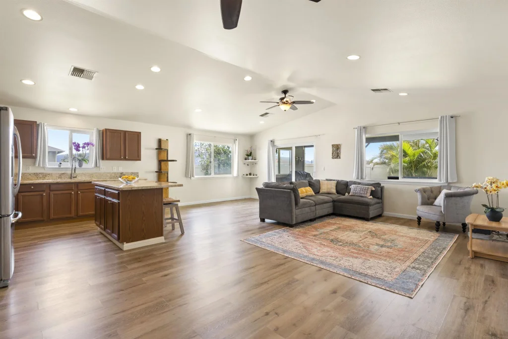 Welcome to your slice of Paradise. Waikapu Gardens is Maui’s hidden gem. A neighborhood brimming with life yet 1 W. Makahakaha Loop remains quietly positioned in its rare, private corner location. SINGLE LEVEL LIVING. Gorgeous Mountain views and even some manini ocean views. The 2017 renovation included new “Driftwood” LVP plank flooring throughout, “Colonial Gold” granite countertops custom cut square edge, stainless appliances, double oven CENTRAL AC, Low electric bill due to PV (Photovoltaic system/Solar Power-recently updated). 1 W Makahakaha Loop is the ideal location for those who want to access all of Maui. Only 5 minutes to restaurants, medical care, and groceries. 10 minutes to beaches, Costco and the airport. This home features a VERY private green grass wraparound backyard with stellar Haleakala views and a fully fenced in yard. Massive outdoor living space, 3 bedrooms, 2 bath home enjoying an optimal floorplan designating guest bedrooms in a separate wing from the primary bedroom. 2 car garage and a concrete driveway deep enough to fit up to 4 cars. Extra-large and deep lot (nearly double for this neighborhood). Dog walkers and exercisers take advantage of the private neighborhood walking trail and park included at Waikapu Gardens. Low HOA dues ($140/monthly) cover the maintenance of Waikapu Gardens walking trails, dedicated park, streetlights, and maintenance of private streets.