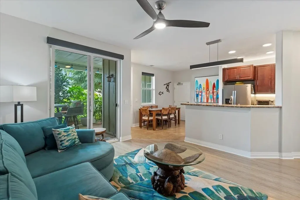Immaculate, freshly painted, two bed, two bath first floor condo with an ATTACHED single car garage. The unit operates on the smart home Control 4 platform. This platform allows you to securely control via smart devices many home features such as lighting, ceiling fans, security, audio, climate control and entertainment. This unit includes a large lanai, and boasts 9ft high ceilings, granite countertops, cherry-stained soft closing cabinets, under-cabinet lighting, and stainless-steel appliances. Luxury vinyl plank flooring in the living room, hallway, and guest bedroom. Tile in the primary bedroom and baths. Easy-to-clean epoxy flooring in the garage. Upgrades include a Samsung dishwasher, LG stackable Washer/Dryer Unit, and a 50-gallon water heater. Professionally installed Lutron motorized shades, ceiling fans, chandelier lighting, Vandor pendant LED light, keypad dimmers and LED lighting throughout. Also included is an 83” Samsung flat screen TV enhanced by a Sonos surround sound home theater. A bonus feature includes extra storage closets at the private gated lanai entrance to the unit. Kai Ani Village is known to have one of the best resort-style infinity edge pools in Kihei. The common area has two well-maintained BBQs with a covered dining area and poolside cabanas to enjoy. So close to the beach, you can take a quick stroll to watch the sunset or the whales when in season. Kai Ani Village is located in the heart of Kihei, steps from cafés, restaurants, gyms, salons, medical, groceries and more. This beautiful and well-maintained unit is a must see.
