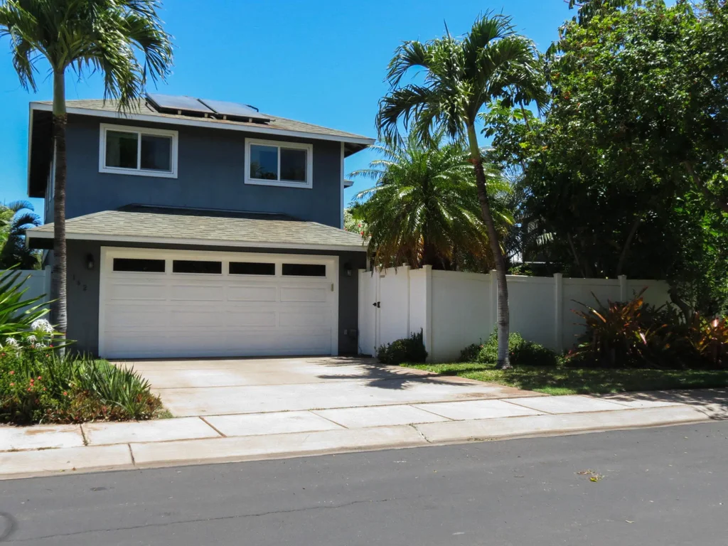This ideally located and carefully maintained two-story home in Piilani Village II backs to greenspace resulting in a very private yard from which you can enjoy Maui's famous sunsets. Eighteen photo-voltaic panels and a solar hot water heater provide comfort while mitigating rising energy costs. Relax in the luxuriously spacious, new shower in the primary bedroom ensuite. All of the original windows have been replaced with new, dual-pane, energy-efficient windows. The interior is freshly painted, and you'll be close to the beach, shopping, and entertainment.