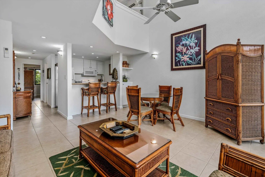 Discover the epitome of island living at Kihei Garden Estates, where this beautiful condo awaits as your peaceful Maui retreat. Nestled in the vibrant heart of Kihei, this condo boasts a rare ocean view, thanks to its advantageous location in the coveted C building, directly across the street from the sparkling Waiohuli Beach! This bright and airy loft-style condo has plenty of windows creating a perfect amount of natural light, highlighting the vaulted ceilings and open, two-story design. The generous lanai provides a perfect backdrop for relaxation or entertaining while taking in the ocean view. Indulge yourself in the nearby restaurants and shops, offering fresh and flavorful local cuisine and unique artistry. Key features include three split A/C units for ultimate comfort, a full-sized washer and dryer conveniently located inside the unit, and an extra-large storage closet ideal for all your beach gear and personal items. This condo complex offers the flexibility of both short-term and long-term rentals, making it an excellent investment opportunity or a permanent residence. Enjoy exclusive amenities that encompass a pool, jacuzzi, a community BBQ area, and a covered pavilion with two large gas grills, all surrounded by mature tropical landscaping. Make this inviting condo with its tranquil ocean view your new home on Maui or a lucrative rental property. Contact your favorite Realtor today to schedule a private showing and experience the idealistic charm and comfort of Kihei Garden Estates!
