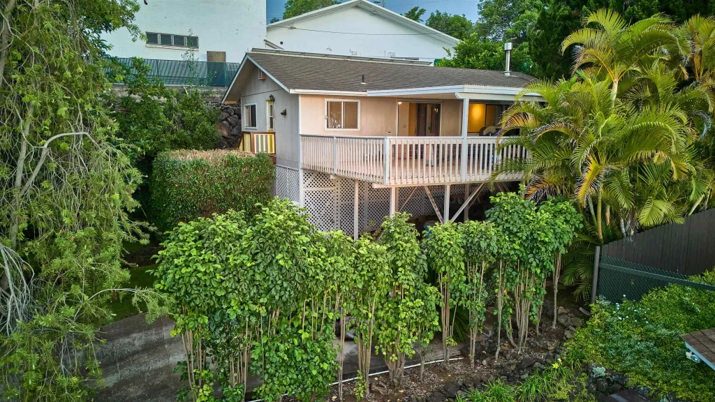 45 Kalihi Pl. is a charming two bedroom one bath home with a large partially screened in deck. The home is quiet and private located at the end of a cul de sac. It has amazing ocean and sunset views. There is a very large storage space under the house, and the net metered solar system with seventeen panels keeps the electric bill to a minimum. The entire house has a water filtration system with brand new filters. The property is beautifully landscaped boasting a large avocado tree and a mature lemon tree.