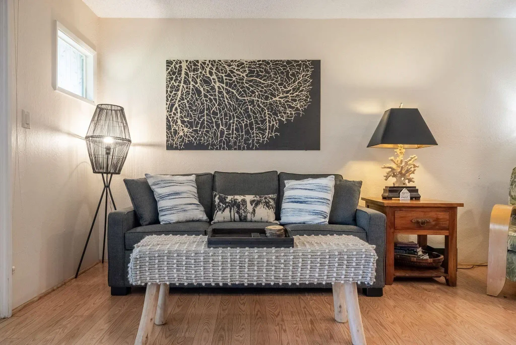 Welcome to your serene oasis! This charming one-bedroom vacation condo, nestled in a lush garden setting, offers the perfect retreat for relaxation and adventure. Recently updated and fully furnished in chic boho style, this ground floor unit exudes a warm and inviting atmosphere. This unit is truely Kihei Garden Estates! Step inside to discover a beautifully decorated space featuring a vibrant unique decor, and comfortable furnishings, creating a cozy yet stylish ambiance. The open floor plan seamlessly connects the living area, dining space, and modern kitchen, making it ideal for unwinding or entertaining. Just steps away from your front door, the inviting pool area beckons for a refreshing dip or a leisurely afternoon lounging by the water. For those who crave the sand and sea, the beach is a short stroll away, offering endless opportunities for sunbathing, swimming, and seaside adventures. Embrace the tranquil garden views from your private patio, perfect for morning coffee or evening cocktails. With all the conveniences of home and the allure of a tropical paradise, this Maui condo is your gateway to an unforgettable home or home away from home.