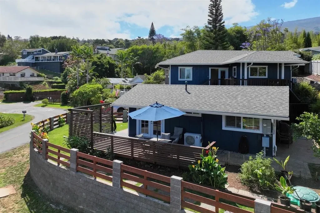Beautiful house 3 bedroom with office and 2 full baths built in 2019 and a 2-bedroom 1.5 bath cottage built 1975 and completely remodeled in 2019. Meticulously detailed and maintained, shows pride of ownership. Ocean & mountains views from this stunning corner lot. New construction in 2019, with an expansive floor plan that can accommodate guests or additional rental income. Corian countertops, farmhouse kitchen sink, large gas stove, stainless Steel appliances, NEW dishwasher, microwave oven, side by side refrigerator, hidden cabinet double trash cans, NEW interior paint, Luxury plantation style open beam ceiling in the main living room, with split air conditioners in every room. Lots of windows throughout with custom white shutters. Beautiful wood flooring and ceramic tile throughout, variety of custom handpicked light fixtures. Fully fenced yard for privacy, spacious laundry room with a full-size washer and dryer. Spacious 3 car garage with 854 square feet and lots of extra storage space, new wood fencing with gates just put up along the side of the garage and backyard for true privacy. Cottage has Trex deck, new septic system, irrigation system, stained driveway, blue rock wall, split rock retaining wall, No HOA. Fully permitted. Original cottage was built in 1975 and completely remodeled in 2019. 2 story main house was built in 2019