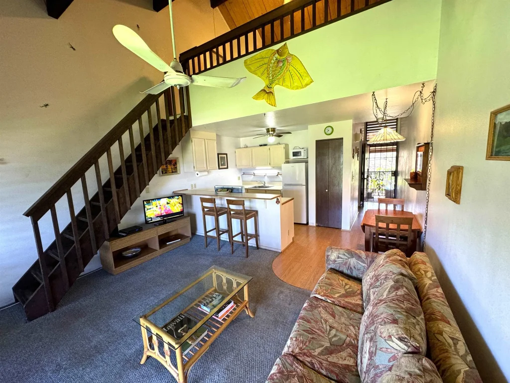 A lovely clean 3rd floor, 1 bedroom/1 bathroom lofted unit at Molokai Shores. The bonus loft area is currently being used as a second bedroom with two twin beds and sitting area. A huge benefit since the maintenance fees are the same as a 1 bedroom unit with no loft. Located near Kaunakakai town with restaurants, hospital and shopping. This unit is being sold with all the furnishings and appliances. Enjoy and relax the beauty that is Molokai from the fabulous built in pool or from your private lanai. You can enjoy the whales when in season, the beautiful sunsets and the peacefulness in this direct oceanfront fee simple unit. This property is also permitted to be used as a short term vacation rental.