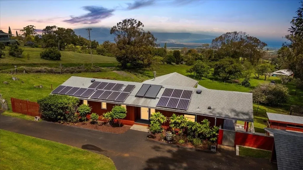 This one-of-a kind property is truly a nature lover's paradise with its own private hiking trails on 2-acres, creating the essence of a Makawao Forrest retreat. It's Maui’s laid-back Olinda lifestyle at its finest. Minutes from Seabury Academy, Spas, Pi'iholo Stables, local shopping, dining, farmer's markets, the Polo Club and more. This super clean home offers a move-in-ready, spacious indoor-outdoor floorplan perfect for entertaining friends & family, boasting ocean & mountain views throughout. The main living area has a Primary Bedroom, walk-in closet, ensuite bath, a guest BR, another full bath, laundry room, kitchen, living, dining w/ ocean & mountain views. All one level! The downstairs has the 3rd br & full bath. Endless possibilities as a mother-in-law suite w/ a private entrance & outdoor shower. Permitted plans are in process with the county for a 1000sf farm dwelling. Property shows pride of ownership with attention to detail for practical upcountry living. Also included, a “mancave” workshop, ample storage and carport parking, a “poultry palace” to provide a lavish space for chickens and your fresh eggs, a goat house offering comfort stations for furry lawn mowers in the pasture. Welcome home to your sanctuary!