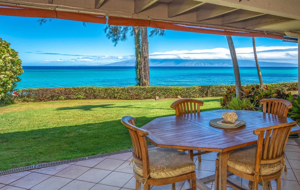 Are you looking for an oceanfront home or a second home here on Maui? Welcome to your slice of paradise in Mahinahina! Nestled along the tranquil oceanfront, this exquisite 2-bedroom, 2-bathroom corner unit at the Mahinahina Beach Resort condos offers a rare blend of luxury, exclusivity, and resort-like amenities. Enjoy stunning ocean views right from your ground floor unit complemented by breathtaking sunsets from your private lanai or grassy area in front of the lanai, perfect for unwinding after a day in the sun. Being the bottom unit ensures easy access to the ocean with no sea wall present. Dive into relaxation with exclusive access to an in-ground pool and jacuzzi, complete with an oceanside deck for soaking in the sunsets. The pool area also features a BBQ space and convenient outdoor showers with heated water. This beautifully upgraded and pet-friendly condo boasts a kitchen with new granite countertops, backsplash, and a Bosch dishwasher installed in 2021 and the double oven was replaced in 2023. A 6-gallon water filtration system under the kitchen sink provides pristine water quality. In addition to the kitchen upgrades, the condo underwent improvements in 2020 with realigned pipes and renovated showers, ensuring efficient plumbing and modern bathroom aesthetics. New whisper-quiet fans were installed in 2021 throughout the home, the kitchen was updated with recessed LED lighting and track lighting with LED fixtures throughout the common areas. Enhanced security and comfort are provided by plantation hurricane shutters throughout the home. Storage is plentiful with ample space throughout the bedrooms. Electric honeycomb blinds in the living area offer convenience at your fingertips, while shades for the lanai on all three sides provide privacy and shade options tailored to your preference. Designed for comfort and style, this property, one of just 32 units at Mahinahina Beach Resort condos, prohibits short-term rentals (minimum of 180-day stay required), ensuring peace and privacy year-round. This corner unit provides additional privacy and windows on 3 sides of the home, allowing for the breeze to flow through the home. It's situated a few blocks away from Pohaku Beach Park, offering easy access to sandy shores, great surf, and scenic walks. Turtles also frequent the area and love the sandy shores. For outdoor enthusiasts, there's additional storage space available for kayaks and surfboards. With garage parking and extra storage available, coastal living has never been more convenient. Parking for the unit includes 1 covered parking stall and 1 stall in the guest parking lot. The property also has an on-site property manager, secured gate access, a library, and a small gym for residents. Conveniently located in Mahinahina, enjoy the proximity to local shops, dining, and the natural beauty of Maui's beaches.
