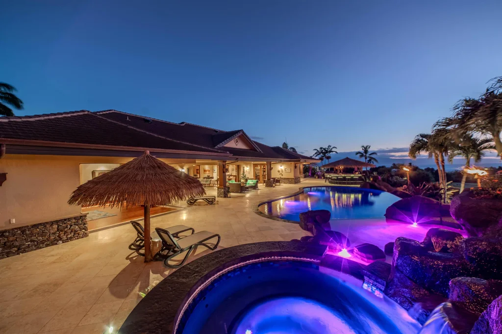 Once in a lifetime an opportunity presents itself, welcome to 185 Kalaihi Place. This one-of-a-kind custom residence is situated on the 10th fairway of the Royal Kaanapali Golf Course, offering unobstructed ocean and island views of both Lanai and Molokai. This home has never been on the market. Inside, discover an expansive open floor plan through the utilization of special imported beams. High ceilings and large pocketing glass doors throughout invite natural light and panoramic views into the living spaces and create a seamless indoor/outdoor lifestyle. The home offers two Guest suites, a custom office with private bath and a movie room for your enjoyment. A spa-like Primary suite is complete with a deep soaking tub, a tropical outdoor rain shower and two large walk-in closets. The extensive outdoor covered living space is ideal for entertaining, and the Tiki Bar is perfect to enjoy breathtaking year-round sunsets. An infinity edge pool with beach entry and spa are surrounded by lush landscaping and waterfall features. Two double garages provide ample space to accommodate four vehicles and are complete with storage cabinets and a large work area. The home is equipped with Photo-Voltaic. Ideally located within the Kaanapali Golf Estates, the shops and restaurants at Kaanapali Beach and Whalers Village are just a short golf cart ride away.
