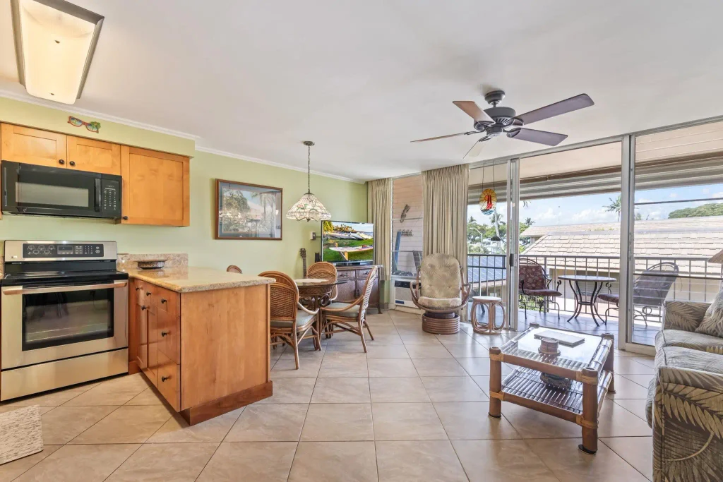 Welcome to Kihei Kai Nani 250. This second floor "Hotel" zoned condo located in South Kihei. Cross the street for direct beach access to Kamaole II Beach Park. This updated 621 sq ft condo overlooks the lush tropical foliage and is the perfect investment property or island escape. The condo has air conditioning in the living room and ceiling fans throughout. Currently an active vacation rental with a successful history of being a rental. Enjoy an updated fully equipped kitchen, and a fully remodeled bathroom. Kihei Kai Nani is perfectly located in South Kihei literally across the street from one of the best beaches in the area, Kamaole II Beach. Perfect sandy beach for swimming, snorkeling, boogie boarding, and soaking up the sun. This vacation condo resort consists of 180 condo on 5 acres. Kihei Kai Nani features a large 60’x30’ fresh water pool, BBQ area, shuffleboard court, laundry facilities, free parking, and close proximity to shops, dining, and ocean activities. The condo is being sold fully furnished. Contact your favorite realtor for more information or a showing.