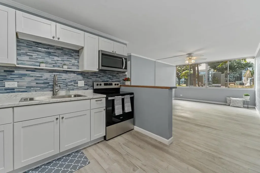 Seller Financing may be available for this ground-level 1 bedroom, 1 bath unit that has been thoroughly and elegantly renovated, showcasing a contemporary and refined design. The gorgeous Lifeproof vinyl plank flooring extends throughout the unit, complemented by crown molding that gracefully touches the newly painted walls and ceiling. Abundant natural light pours in through the expansive windows, highlighting every upgrade detail in the condo. The kitchen features butcher block bar countertops and white soft-close cabinets, making cooking effortless, while brand-new appliances enhance meal preparation. The bathroom offers a spa-like retreat with a tiled walk-in shower equipped with smart technology, including Bluetooth-enabled speakers, a vent, a night light and a large walk-in closet that may also be utilized as a storage space. The complex features a playground, basketball court, and a private pool surrounded by vibrant gardens, cool shady trees and a serene koi pond. Additionally, the property is conveniently located near the harbor, popular surf spots, medical facilities, schools, and delightful restaurants. This impressive unit is a ground floor unit with easy access to your assigned parking stall, just a short distance away. Enjoy the added privacy and tranquility of your secluded space in Harbor Lights.