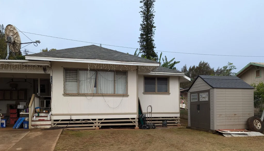 Classic plantation house with some renovations completed. Lot is small, but frontage is very open. Large carport, with storage, is a positive feature for this home. Lowest price on Lanai at this time.