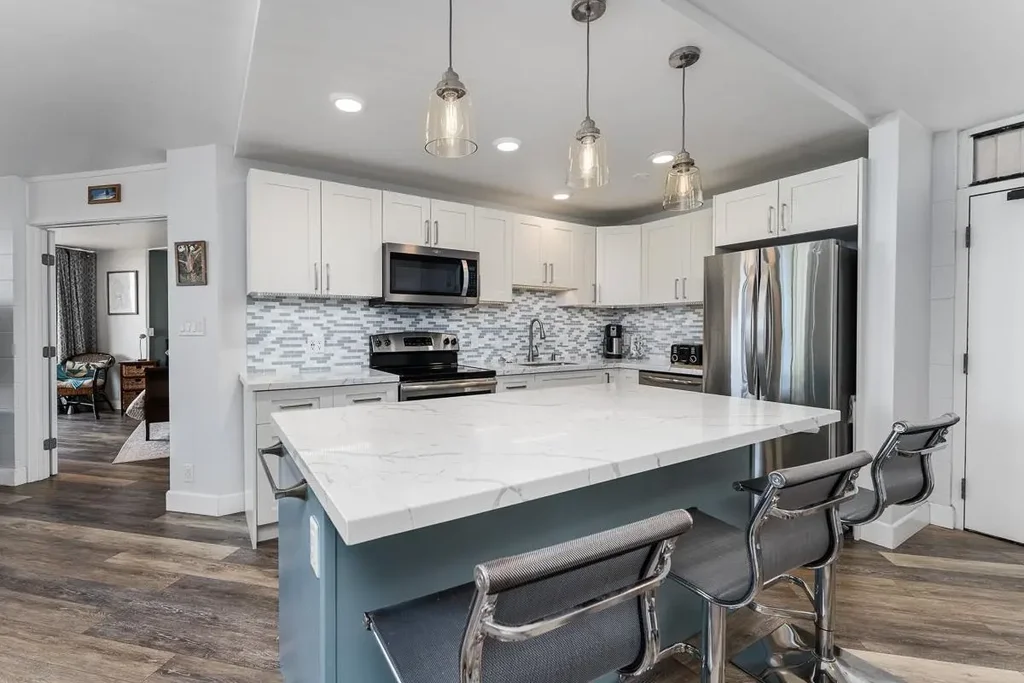 Interior Designer inspired complete remodeled ocean-view condo. This is the LARGEST 1 bedroom floor plan available in the complex.! SIZE DOES MATTER. This unit is being sold fully furnished and turn-key. You'll appreciate the modern beach chic aesthetic to this oceanfront complex. Kauhale Makai has a pool, hot tub, adjacent BBQ area and FREE PICKLE BALL COURTS in the public park adjacent to this complex. Located on the 5th floor with both ocean and mountain views from the private lanai, unit 523 is accessible by elevator and is easy to show. Maintenance fees include water, trash, Spectrum Cable, Hawaiian Tel fiber optic internet, quarterly pest control, and all exterior maintenance.