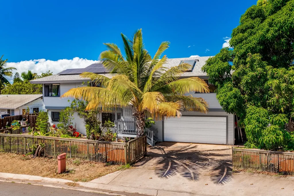 Welcome to this spacious and versatile property, perfectly designed for multi-generational living or potential rental income! The main level boasts a 3 bed, 2 bath home with gorgeous vaulted ceilings and approximately 1600 sq. ft. of living space, complemented by nearly 1000 sq. ft. of covered lanai space - ideal for outdoor dining, relaxation, and entertaining. Downstairs you'll find a well-appointed Ohana with a separate driveway and entrance, a kitchenette, bathroom, and covered yard space. The property features a lush backyard with multiple fruit and mango trees, and ample space to start your own garden. The 2-car garage, along with extended driveway space offers plenty of room for a boat or additional storage. Modern conveniences include a split AC system and a 12-panel owned solar system. The exterior of the home has been freshly painted in 2024. This property is zoned R-2, allowing the building of an additional ohana unit. Located within walking distance to restaurants, shopping, beaches and parks, this home combines flexibility, comfort and a prime location.