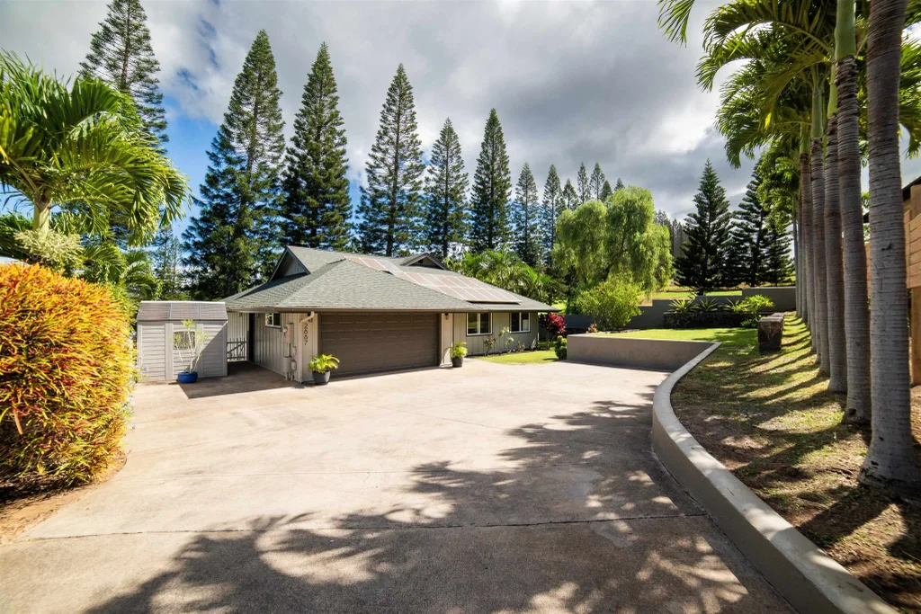 This beautiful, move in ready home sits on the 10th fairway of the Pukalani golf course offering a great setting overlooking the course and the pond. Recently remodeled this home is in immaculate condition. Upgrades include a hot tub, new gutters, 2 brand new bathrooms, new vinyl flooring, 2 split AC units, blinds and interior/exterior paint. A 17 panel owned photo voltaic system will keep your electric bill to a minimum. This home boasts a covered lanai, large walk in panty, separate laundry room and large closets in all 3 bedrooms. A hot tub, outdoor shower, great outdoor space with a fully fenced back yard and the privacy of a flag lot in a cul de sac makes this home a pleasure to show.