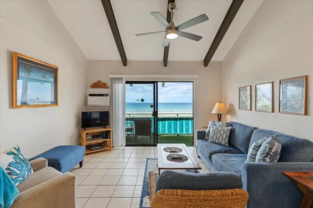 A KIHEI BEACH ESCAPE Unobstructed ocean-views are yours from this stunningly remodeled 1 b | 1 b vacation rental condo directly across the street from the beach. As one of the largest 1b units in the Shores of Maui, it is perfectly situated with underground electrical and telephone lines. The condo features an additional upstairs finished storage loft which is not included in the interior square footage by the County of Maui. This additional loft area may not be used as a bedroom. Continually remodeled through 2024 and tastefully furnished, it combines island elegance with contemporary comfort. Nestled in the heart of Kihei, the property offers convenient access to groceries, dining, boutique shopping and the pristine sandy beaches. Enjoy spectacular year-round sunset views from both inside and your private lanai. Also enjoy spotting the humpback whales during in season. Join in or watch the surfing and paddle-boarding in the crystal-clear waters. With sweeping views of the neighboring islands and endless ocean activities, this condo presents an unparalleled opportunity to experience the best of Maui’s lifestyle.
