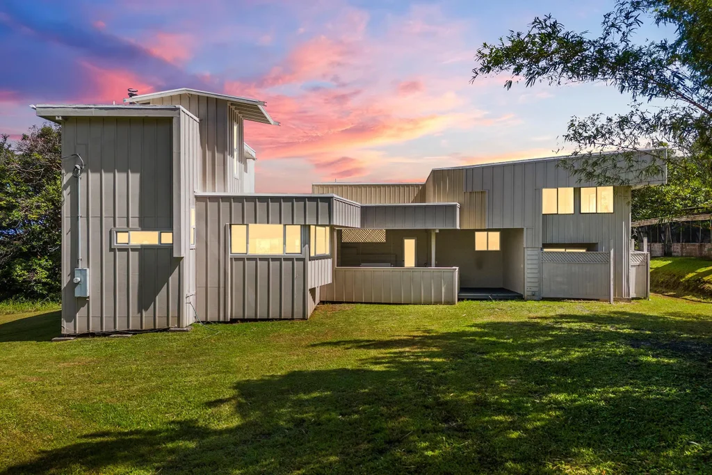 Crafted by renowned local architect Don Bernshouse, this architectural gem is truly one of a kind. Nestled on two acres of pristine land, this property boasts dramatic ocean and gulch views. The 3-bedroom, 3-bathroom home offers 2,471 square feet of thoughtfully designed living space. This unique property is artfully divided into three distinct areas, seamlessly connected by covered breezeways. Each section provides its own sense of privacy and purpose, perfect for family living or entertaining guests. Enjoy the flow of indoor-outdoor living while surrounded by beautiful landscaping. The expansive grounds include a pickleball court, perfect for outdoor recreation, and a greenhouse structure that awaits your creative vision for rebuilding. With catchment water systems in place, you can enjoy sustainable living in this idyllic setting. The flat terrain on the Mauka side of the property has a separate access off of Awalau Road and offers the ideal place for adding an Ohana or guest house. Embrace the potential of this unique property, where creativity meets nature in a harmonious blend.
