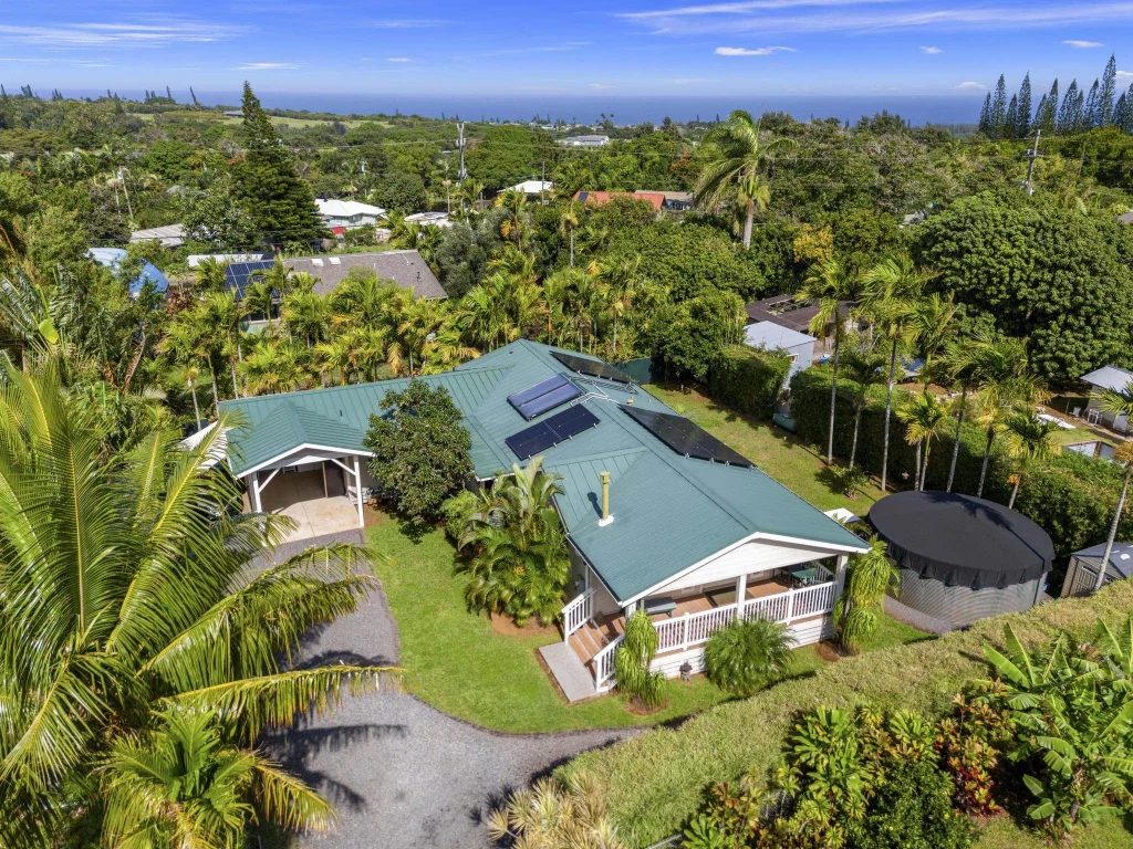 This very unique property on Maui's North Shore, located in Haiku, offers a fantastic location close to essential amenities like stores, restaurants, Haiku school, the post office and is only located 10mn to Paia and 20mn to Kahului. The home has 3 bedrooms and 3 bathrooms, plus a large office space. Two of the bedrooms are particularly unique, featuring their own separate entrance and an en-suite bathroom. This is unit A of a residential CPR. This home is designed with sustainability and efficiency in mind, including a water catchment system, a durable metal roof, and an array of owned photovoltaic (PV) solar panels. The interior is in immaculate condition and thoughtfully appointed with granite countertops, a gas range, vaulted ceilings, bamboo laminate flooring. The covered lanai offers a spacious outdoor living area, perfect for enjoying Maui's beautiful weather and for entertaining. This property combines the charm of island living with modern convenience and eco-friendly features, making it a wonderful opportunity for those seeking a comfortable and functional home in Haiku.