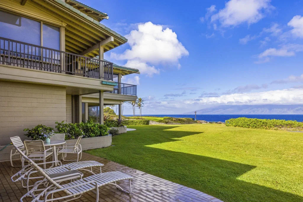 Oceanfront opportunity with expansive views toward Molokai, Plantation and Hawea Point. This one bedroom, one bath unit comes with a bonus den for additional living space. Walk out onto your lawn with beach chairs and watch the sunset year-round from Lanai to Molokai and back again. Whales frolic in your front yard during their time in Maui's ocean water. Enjoy the U’a U’a Kane return to their homes as the sun sets over the ocean. Private garden entrance to your spacious home with remodeled kitchen, extended lanai, entertainment area and large spa bath. Close to Kapalua amenities: Spa Montage, white sand beaches, great restaurants, world class golf courses, Kapalua hiking trails, resort security, 3 pools, tennis and pickle ball courts. Please call your Realtor to arrange for a viewing. 36G-4 was used exclusively by the owners, there is no rental history. Sold furnished, with artwork and personal effects excluded.