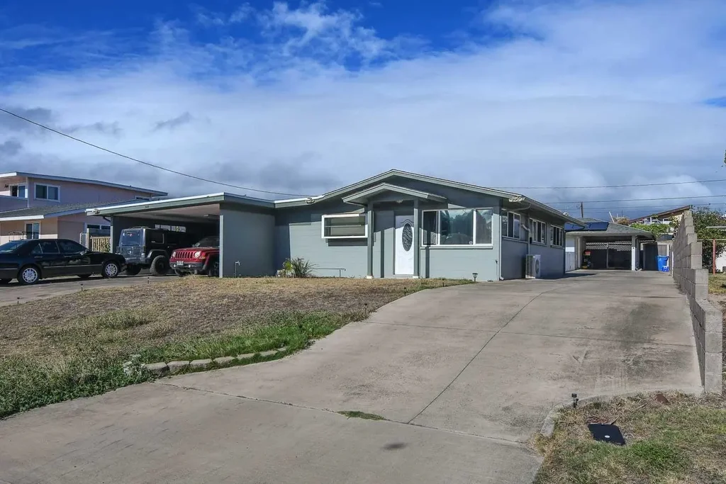 This 4-bedroom/2-bathroom house and cottage in the heart of Kahului sits on a large lot of 10,640 sf of land, a great property for homeowner of investor. Grid-tied PV system with Tesla Battery back up was installed in 2022, through a Sunrun lease with 11 panels on main home and 8 panels on cottage, according to permit plans. The original home's original floorplan was 3-bedroom/1-bathroom, and was extended with permits to include another bedroom, bathroom, and family room in 1986. The main home had a new roof installed in 2014. The cottage was built in 2005 and has 2-bedrooms/1-bathroom, central a/c and its own washer/dryer, as well as its own driveway and carport. LVP flooring installed in sections of the main home in 2021. Home was fumigated in 2021. Schedule a showing appointment with your favorite Realtor!