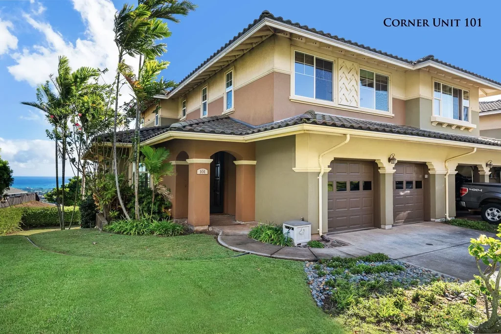 Looking for luxury living in an exclusive gated community with ocean views from nearly every room? This luxury townhome offers just that! Imagine bathing in the primary suite in an oversized soaking tub with sweeping ocean views.... Contemplate reading a magazine while lounging on the oversized built-in seating couch with a panoramic view of Kahului Harbor.... Crown molding adorns almost every room along with high baseboard. The kitchen, bath and laundry room cabinetry are all made from African Teakwood. This particular floor plan is perfect for entertaining especially with the optional built-in buffet cabinet. Unit 101 is a corner end unit and is located on the front row. Enjoy your morning coffee on the spacious covered lanai while watching the sunrise over Haleakala.... You'll delight in feeling the cool tropical breezes at this 670 ft. elevation along with viewing the city lights at night! Sellers to provide Buyers with a one year home warranty at closing!