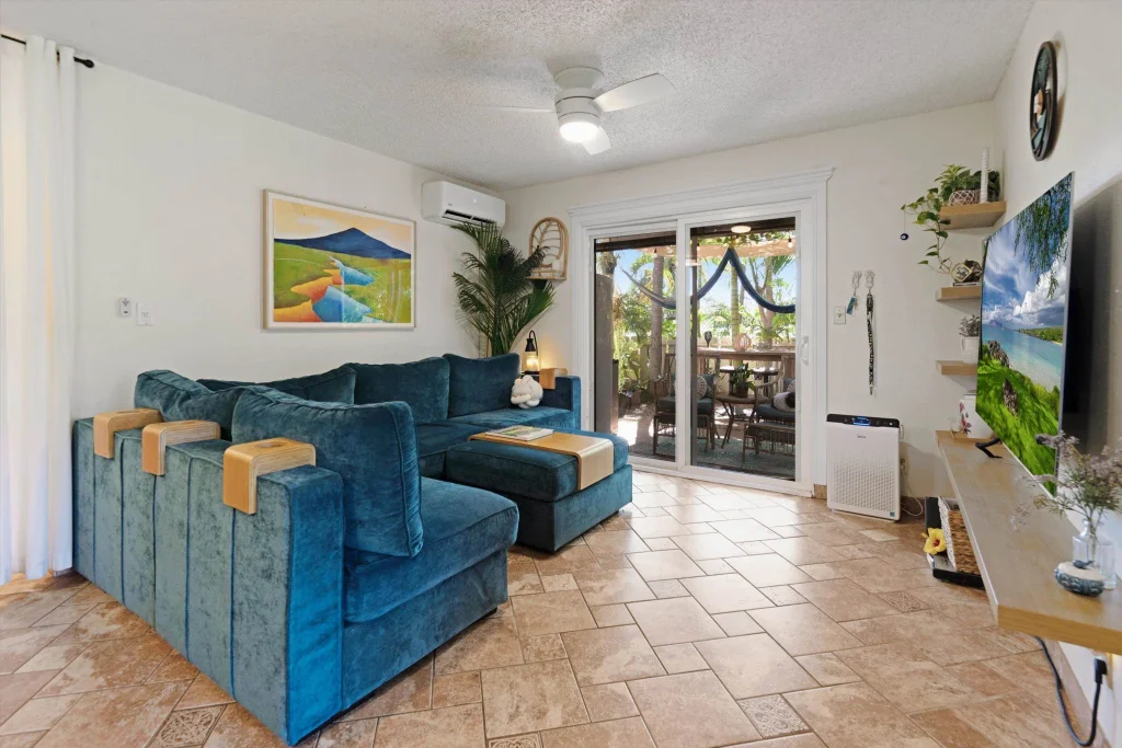 Prime Location in Kihei Villages – Charming 2-Bedroom Condo with a Private Tropical Oasis Welcome to the best location in Kihei Villages! This delightful 2-bedroom, 1.5-bath condo offers a serene retreat with a lush, landscaped yard that's both private and expansive. With gated access leading directly to the street, you'll enjoy the convenience of being close to a County park and just a short stroll to the sandy beach with magnificent views over Maalaea Bay.. The open-concept living, dining, and kitchen area creates a welcoming space, enhanced by upgraded windows that fill the home with natural light. The kitchen features solid surface counters, while tile and laminate flooring add a touch of style throughout. The dining area boasts a peek-a-boo ocean view, perfect for enjoying meals with a scenic backdrop. Stay comfortable year-round with a newly installed split AC system in the living room and both bedrooms. Outside, the two-level tropical yard with a stone retaining wall is your personal oasis, complete with a hammock for ultimate relaxation. Additional features include a decorative security door with unique palm tree design, low-maintenance yard care, an outdoor shower and a harmonious blend of indoor-outdoor living. This property is a perfect slice of paradise in one of North Kihei's most sought-after locations!